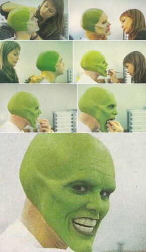 “10: Stills from the application of the face paint and prosthetics Jim Carrey donned for 1994’s The Mask. One of three mega-hits for the actor that year—alongside Ace Ventura and Dumb and Dumber—Carrey soon saw himself vaulted into stardom. A condition which (considering his esoteric comments on red carpets and late-night TV appearances in the years to come) ironically saw the actor seemingly wrestling with his own sense of reality, rendering him perhaps at points unable to determine what was ‘himself’ and what was ‘the character.'”