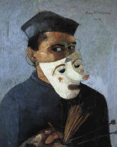 “16: Felix Nussbaum’s Self-portrait with a mask (1928). Oil on 24.4″ by 19.9″ canvas. Briefly held by Belgian authorities in 1940 following Germany’s invasion of that country, Nussbaum not unexpectedly faced increasing pressure as a Jew. Following the 28 May 1942 “Jewish Badge Decree,” a scenario arose for the artist that no mask would serve to ameliorate. After being released and going into hiding for a time, he was denounced on 20 June 1944; Nussbaum would die that year, at age 39, in Auschwitz.”