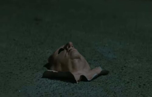 “9: An image from 1993’s Mrs. Doubtfire, in which Robin Williams’s granny mask falls into the street, is unceremoniously run over by a garbage truck, and emits an audible, ‘OUGH!’ Designed by Oscar-winning Greg Cannom (1951-2025), the actual mask Williams wore for the film consisted of eight separate pieces and took more than four hours to apply. Even after more than thirty years and changing social attitudes in some quarters towards the film’s subject matter, I can say it still holds up.”