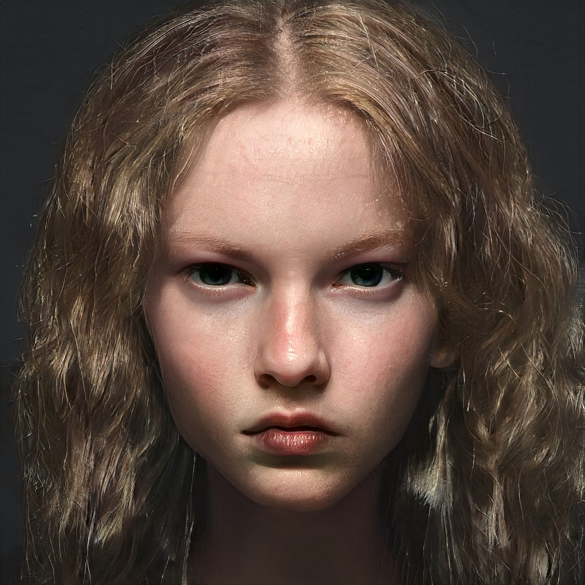 “My portraits are of no one and of everyone. They are emotional amalgams of many faces, prompting an uneasy sense of recognition as they manifest the gracious brow of our favorite actor or slip into another age or gender. Alluring but somewhat sickly, these portraits, as series, create an alternate society or an uncanny kinship group. The portraits are conceived through purely digital parentage, giving me a canvas to create a new, emotive identity in each image.