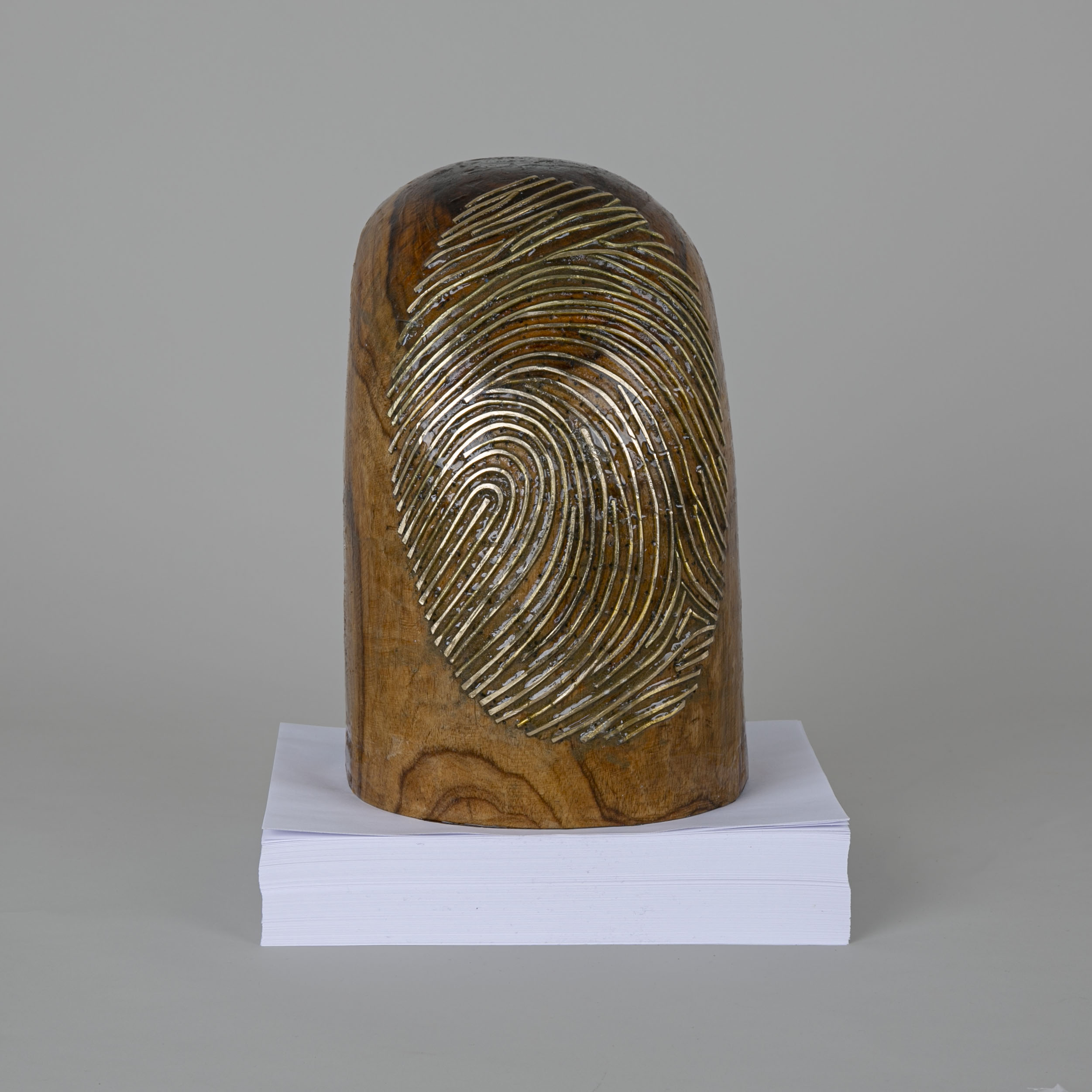 Wood, brass rods, stack of papers (15" x 11" x 8.5")